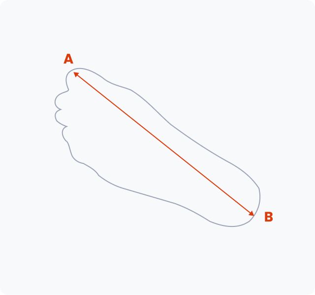 4. Take off the foot and measure the distance between the marks - this is the length of the foot. Repeat for the other foot and choose a larger measurement, matching it to the size chart.